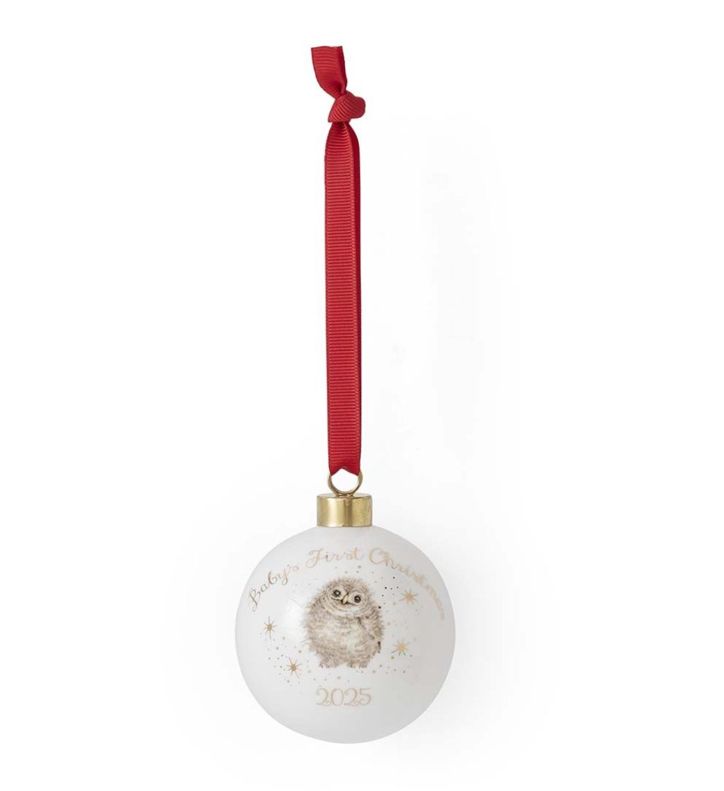 Feir babyens første jul med denne vakre julekulen med et fantastisk festlig ugledesign. Laget av fint porselen og pakket i en gaveeske. Mål: 7 cm. Produktpleie: Tørk av med en fuktig klut.