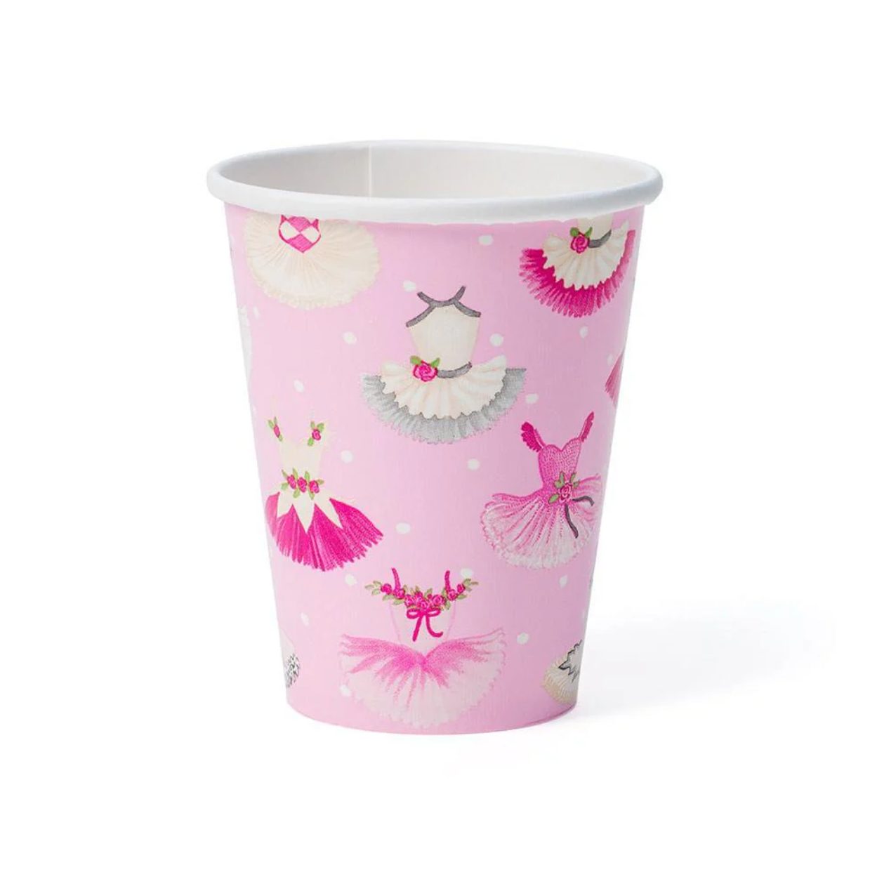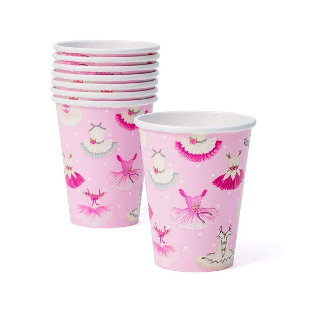 Pappkrus fra Caspari med motiv av ulike ballerinaskjørt på rosa bakgrunn.
