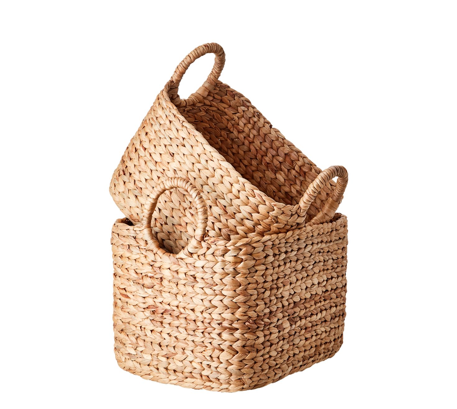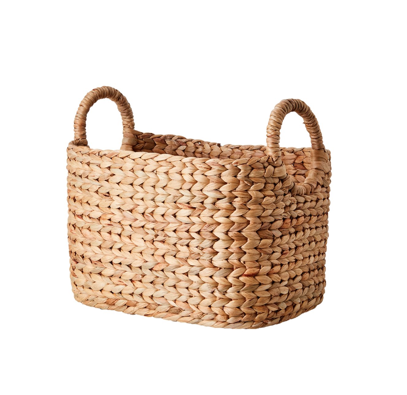Hold det ryddig og fint med denne dekorative kurven med håndtak. Kurven kommer i to ulike størrelser, og dette er den minste med målene 34 (lengde) x 28 (bredde) x 31 (høyde) cm. Laget av bast/Water hyacinth.