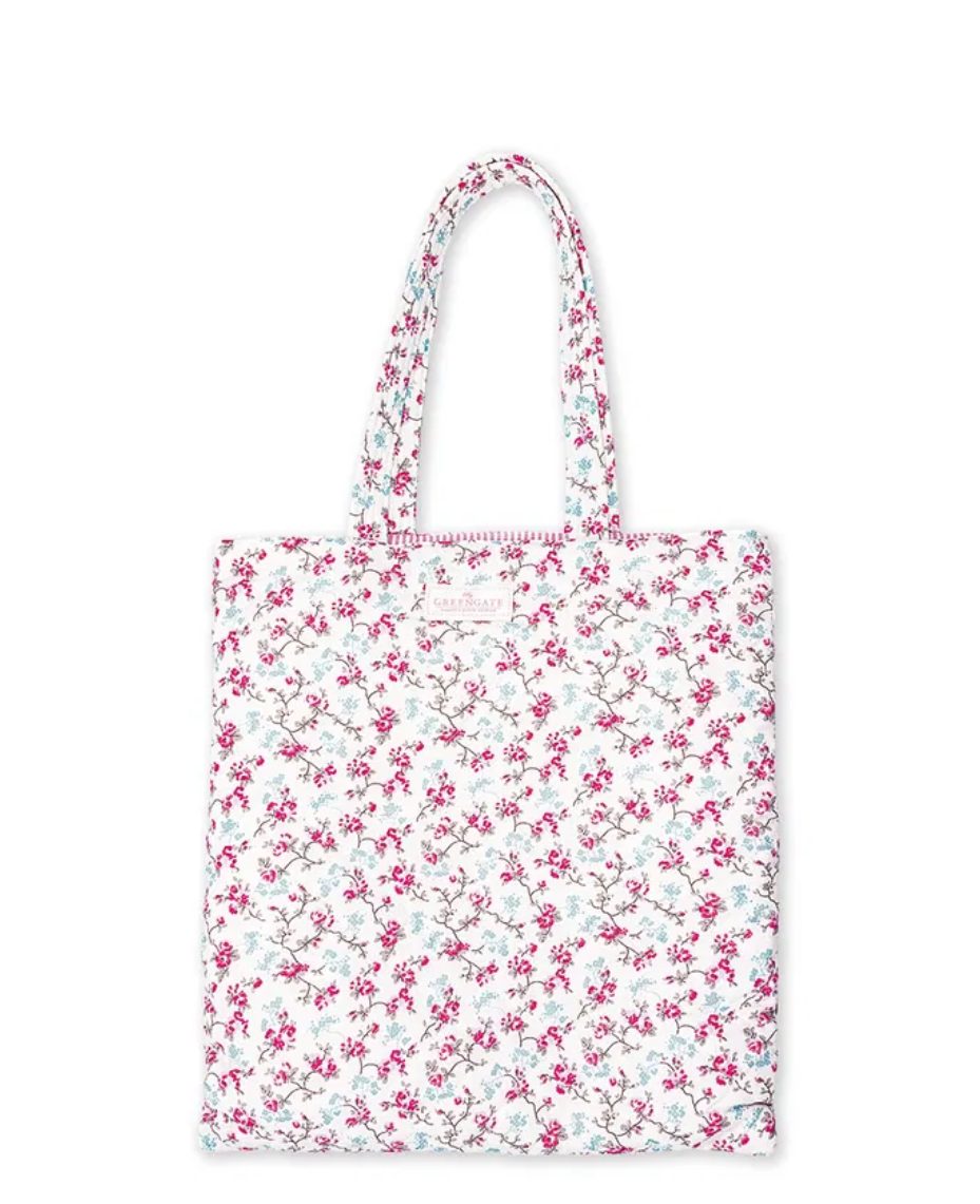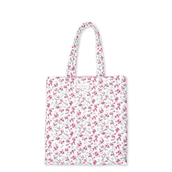 Denne hvite, vatterte Elsy-vesken er romantisk og vintage-inspirert, og har myke teksturer og et friskt, malerisk utseende. Den lette og luftige fargepaletten kompletteres av den praktiske formen – perfekt for daglig bruk eller som en sjarmerende gave. Den er slitesterk, men likevel delikat i stilen, og gir et nostalgisk preg uansett hvor du går. Bær skjønnhet med letthet.