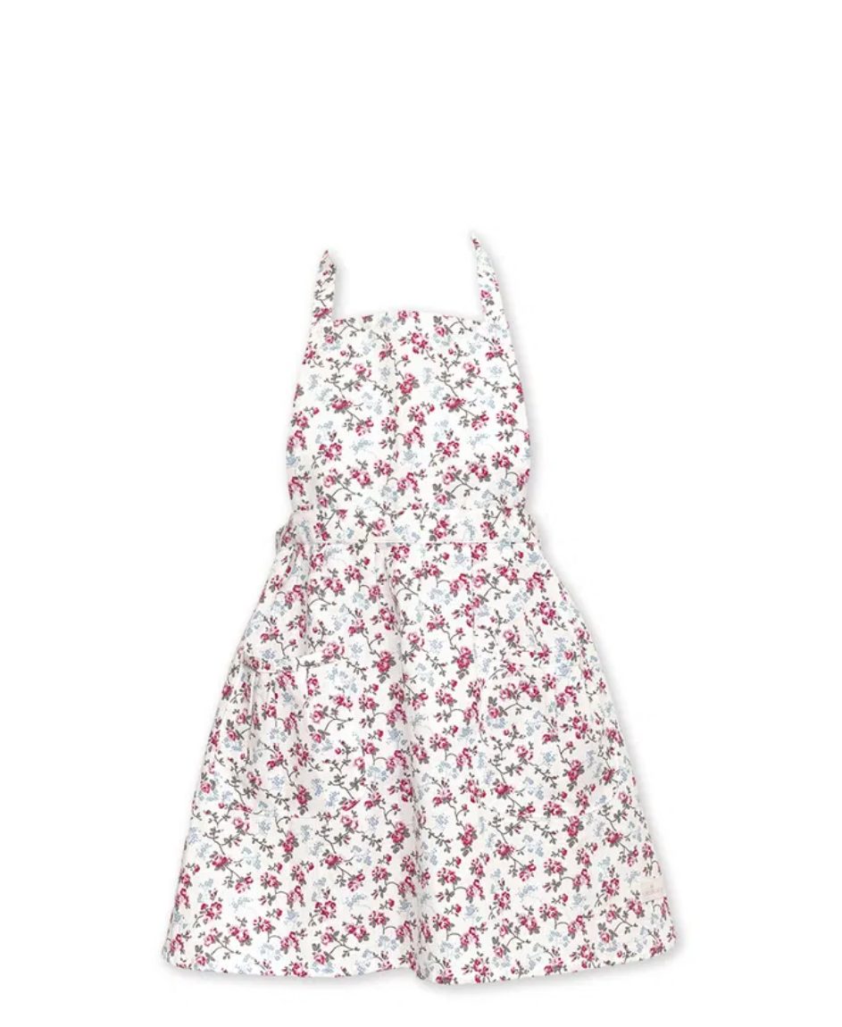 Det sjarmerende og myke, hvite Elsy-barneforkleet er perfekt for små hjelpere på kjøkkenet. Med sitt livlige, men likevel vintage blomstertrykk og romantiske rysjer, gir det glede til enhver bakeøkt. Lett og komfortabelt, gir det frihet til å leke og skape. En søt følgesvenn for unge kokker.