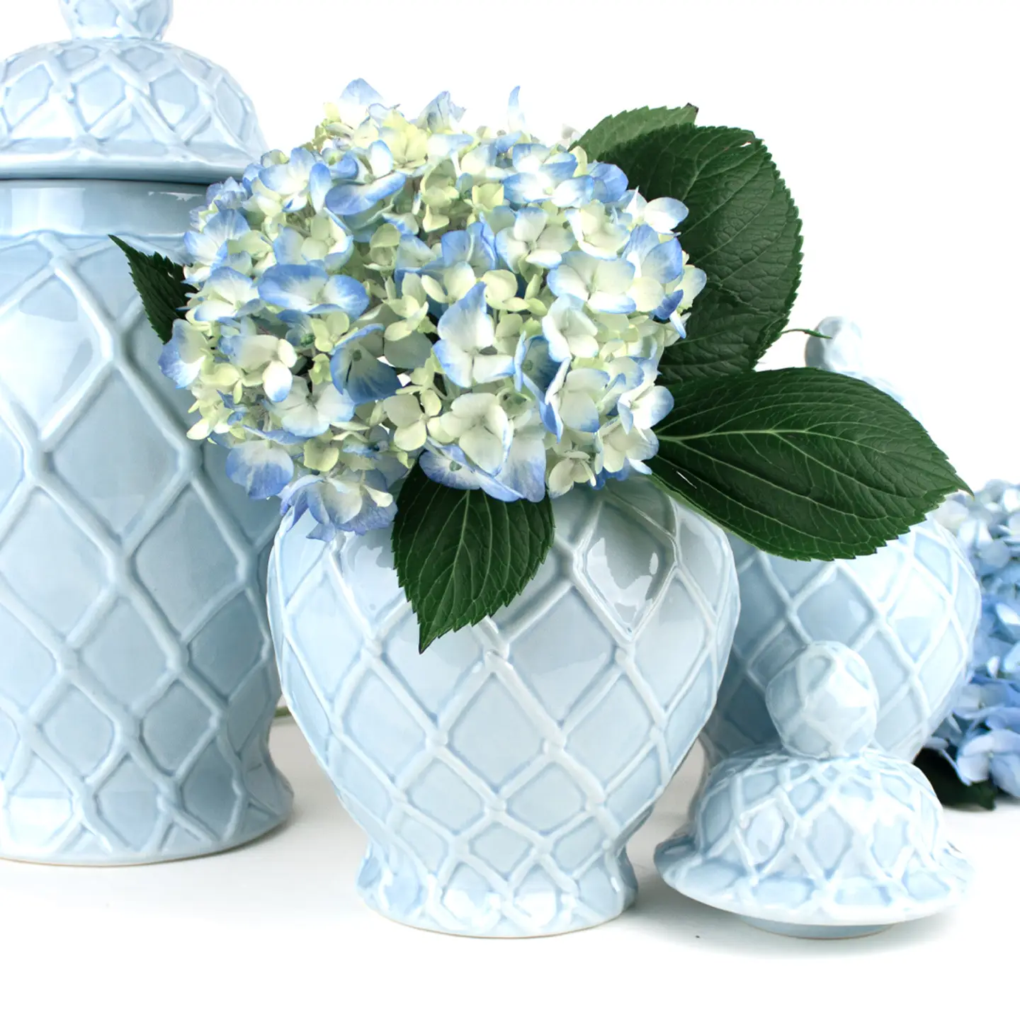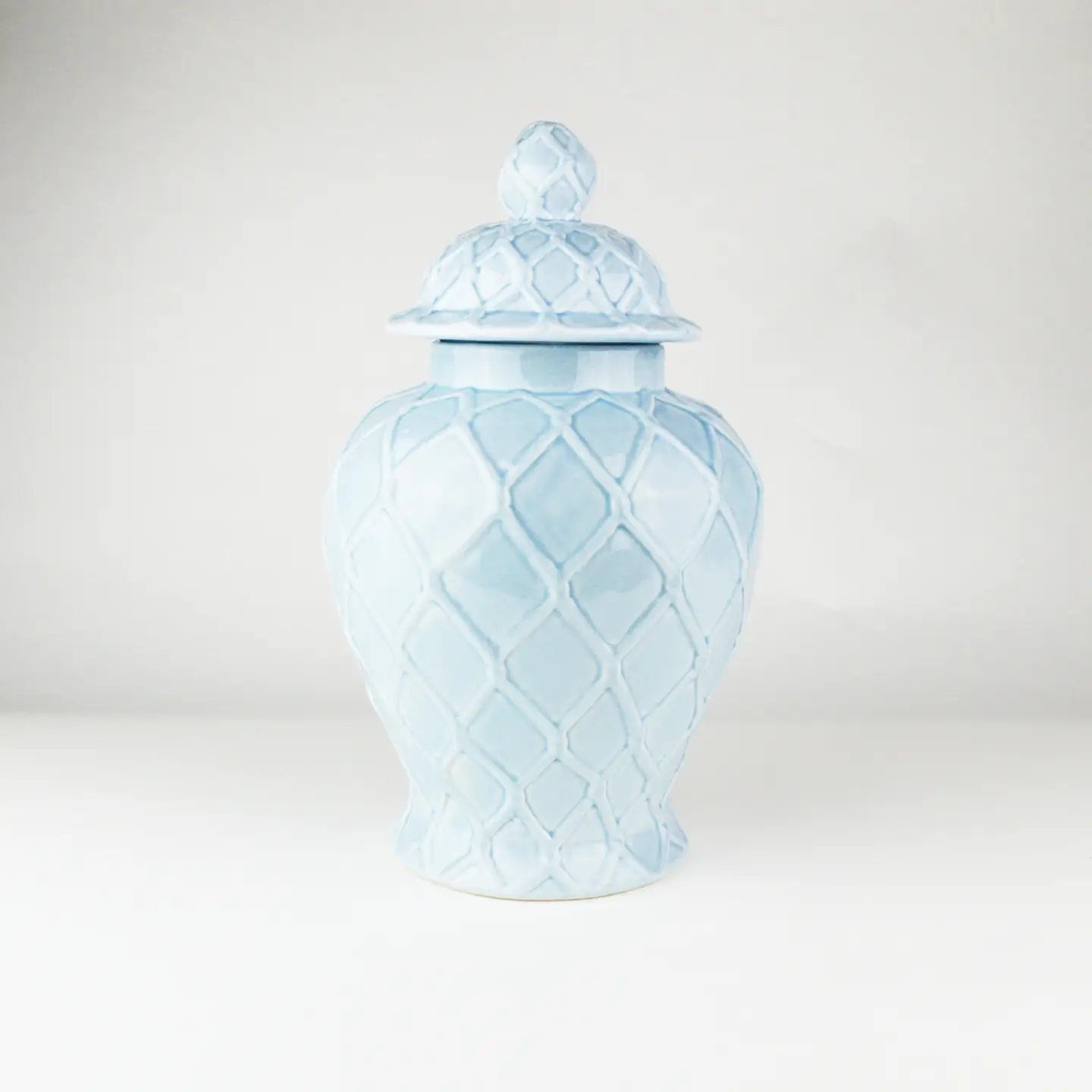 Denne overdimensjonerte krukken er laget med intrikate teksturerte detaljer, og gir dybde og visuell interesse samtidig som den skaper et dristig blikkfang i ethvert rom. Den er tilgjengelig i fem vakre nyanser – lyseblå, grønn, marineblå, rosa og hvit – og er enkel å mikse og matche eller finne den perfekte fargen som komplementerer innredningen din.