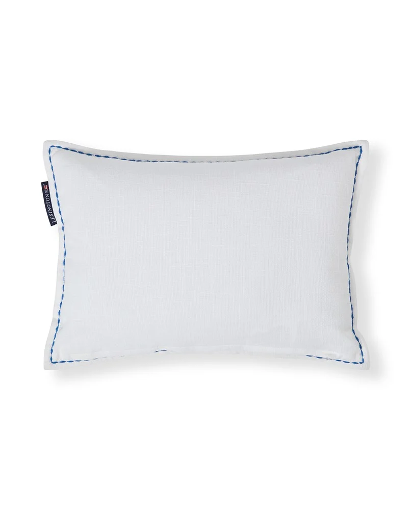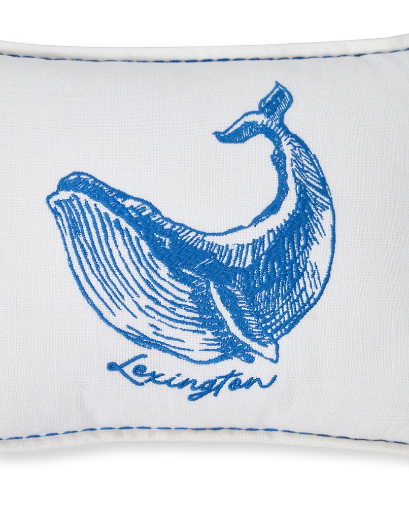 Gi hjemmet ditt leken kystsjarm med denne dekorative pynteputen i myk økologisk bomull, med et originalt hvalbroderi i frisk hvitt og blått. Kraftige sømmer og råkant med frynser gir en håndlaget tekstur, mens den skjulte, fargematchede glidelåsen sørger for en ryddig finish. Puten er laget i en sertifisert Green Factory og er Oeko-Tex-sertifisert for ekstra trygghet. Den kompakte størrelsen er enkel å kombinere på sofa, lenestol eller seng. Innerpute med resirkulert polyesterfyll er inkludert.