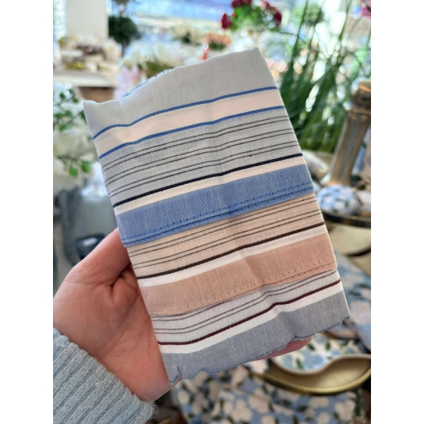 Pakken inneholder 2 blå, 2 beige og 1 grått lommetørkle.