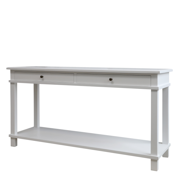 Marseille skjenk fra Chic Antique i en hvitlakkert versjon, som kombinerer moderne eleganse med klassisk fransk design. Bordet er laget av heltre poppel, og den lyse, hvitlakkerte finishen bidrar til å skape et friskt og tidløst utseende som enkelt kan integreres i både tradisjonelle og moderne hjem. De to romslige skuffene gir god oppbevaringsplass for alt fra kjøkkenutstyr og serveringsutstyr til småting, slik at du alltid har praktiske løsninger for hånden.
