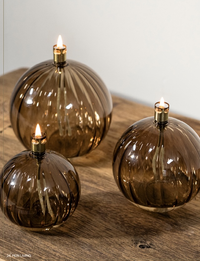 Vakker oljelampe i glass fra Peri Living, som gir en fin stemning i rommet. Du kan velg mellom 3 ulike størrelser. Oljelampen er like fin alene som satt sammen med flere. Dette er en fin gave, da den passer inn i de fleste hjem, uansett stil.