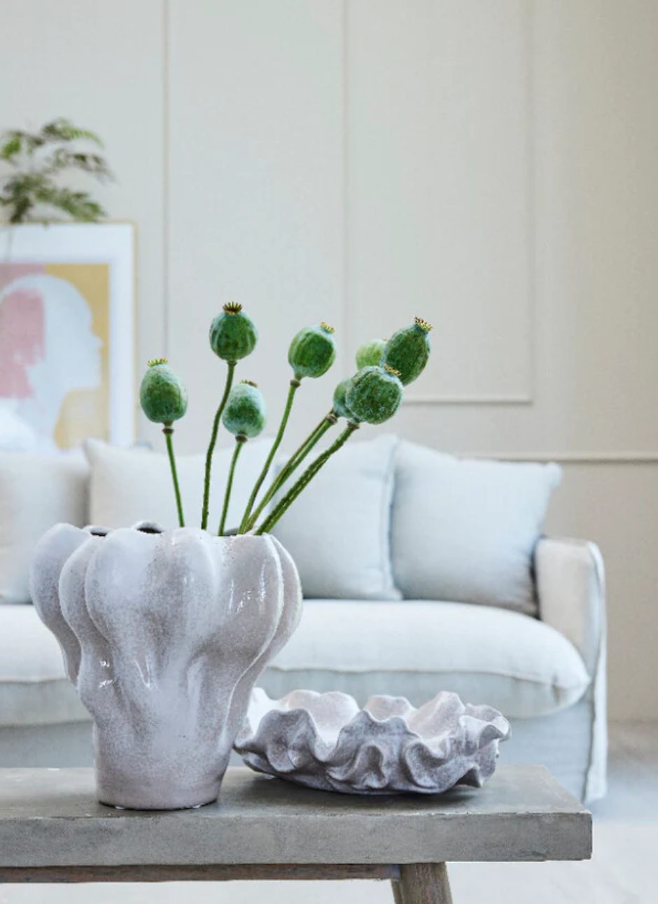 Stilig og slitesterk Viola keramisk skål i fargen sand og måler L35,5 x B26 x H10 cm. Med sitt vakre estetiske uttrykk og robuste konstruksjon, ser denne skål ikke bare flott ut, men den er også bygget for å vare. Laget av høykvalitets keramikk, er Viola skål det perfekte tilskuddet til ethvert rom. Dens elegante design passer sømløst inn i enhver innredning og tilfører et snev av raffinement til rommet ditt. Nyt bekvemmeligheten av en elegant og slitesterk bolle som gjør den til et ideelt valg for ethvert hjem.